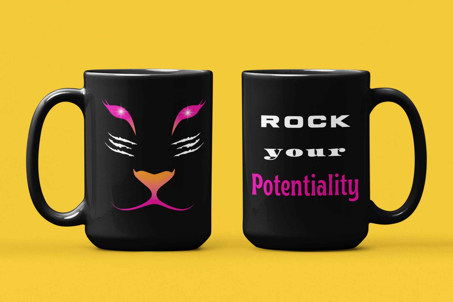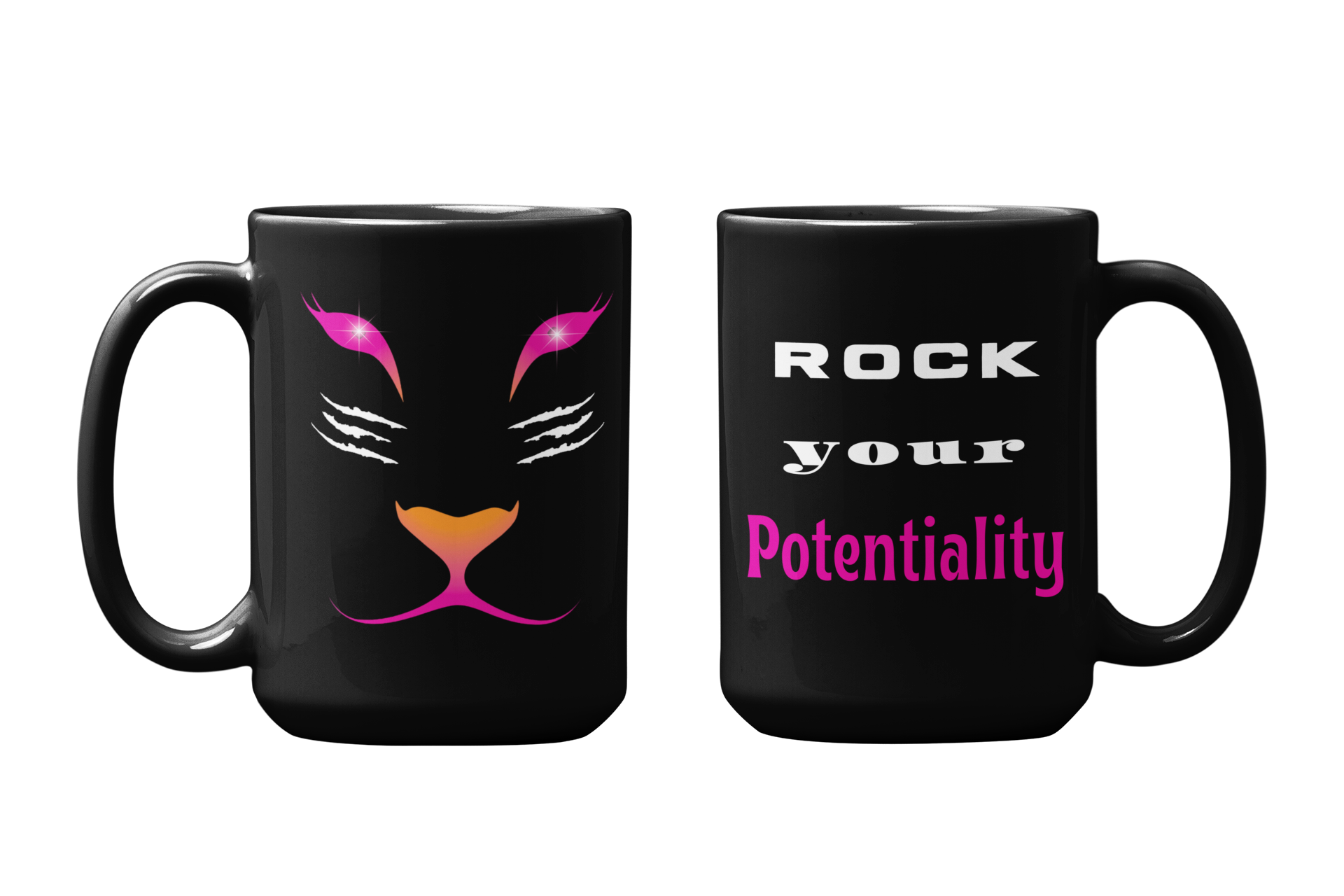 ShareBlack Glossy Coffee Mug With Words 'Rock Your Potentiality'. Lioness Face