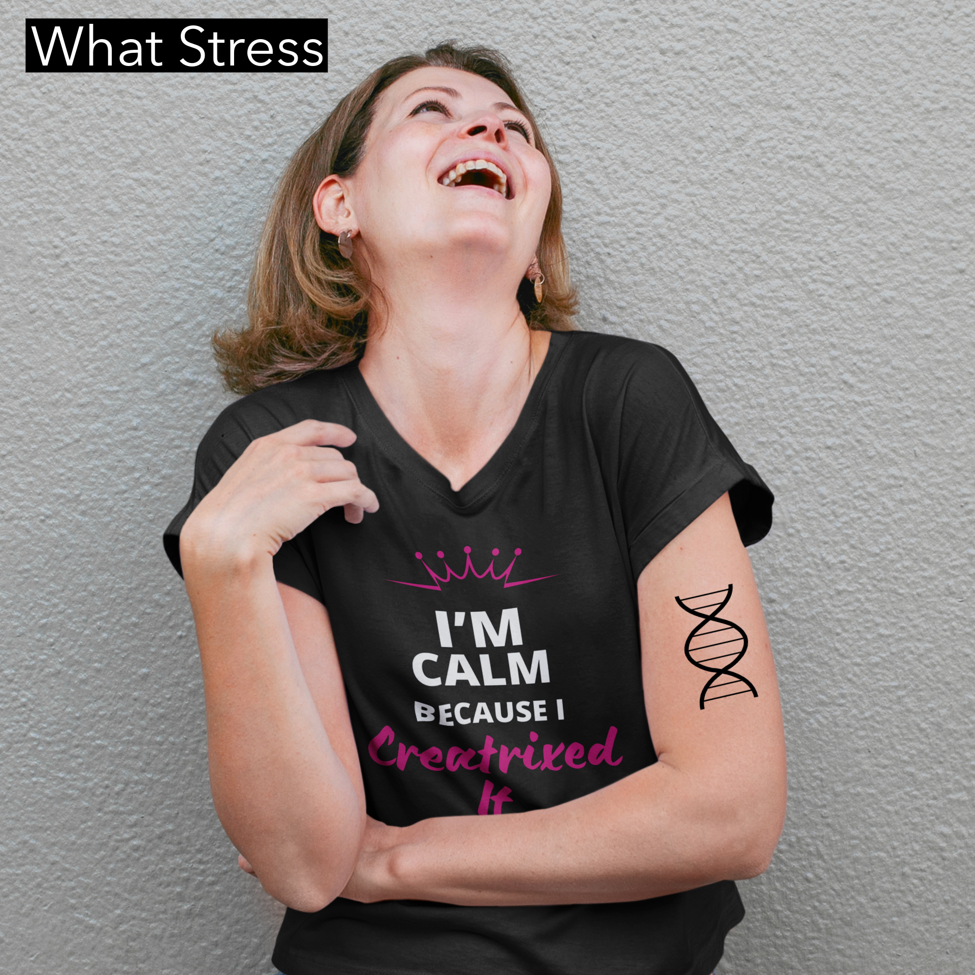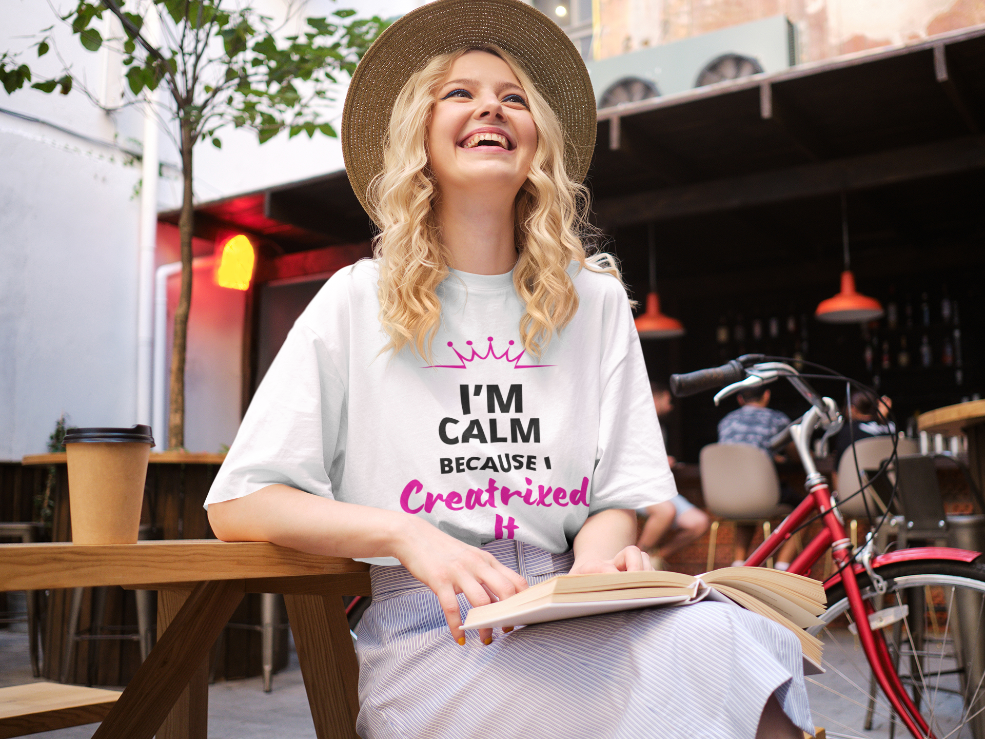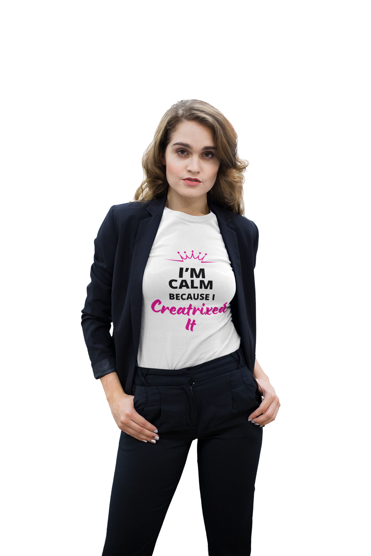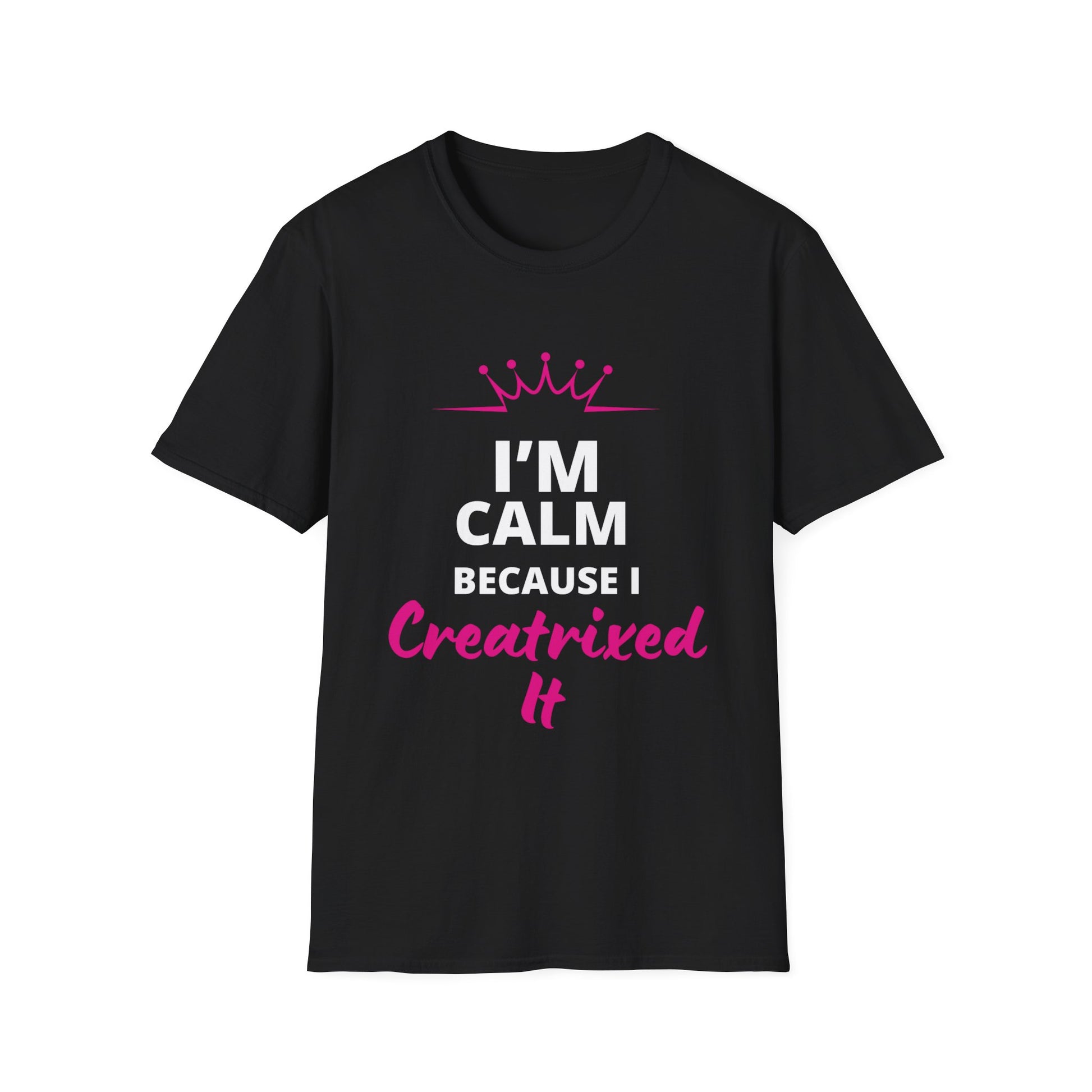 'I'M CALM BECAUSE I CREATRIXED IT' relaxed, soft-style t-shirt puts a new spin on casual comfort. Made from very soft materials, this tee is 100% cotton for solid colors. Heather colors and sports grey include polyester. The shoulders have twill tape for improved durability. There are no side seams. The collar is made with ribbed knitting to prevent curling damage.