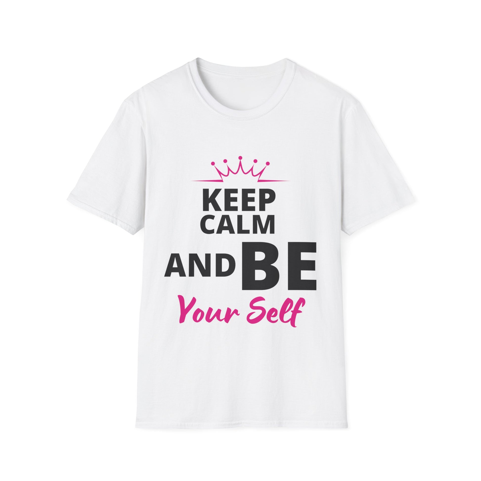 KEEP CALM AND BE YOURSELF White Printed Soft T-Shirt