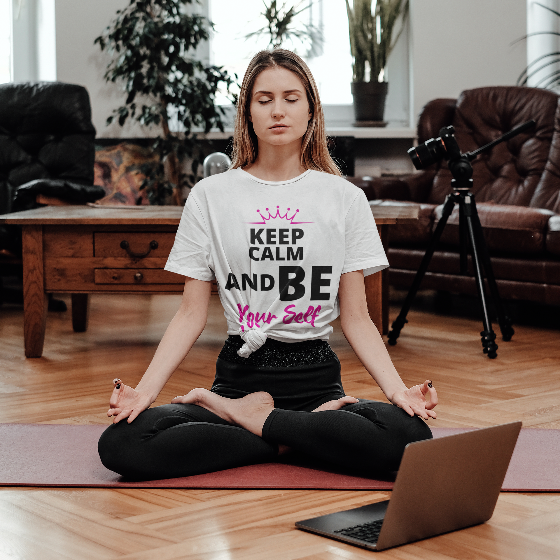 Empowerment White T Shirt. You KNOW your words have power to create! KEEP CALM AND BE YOURSELF printed on white T Shirt.