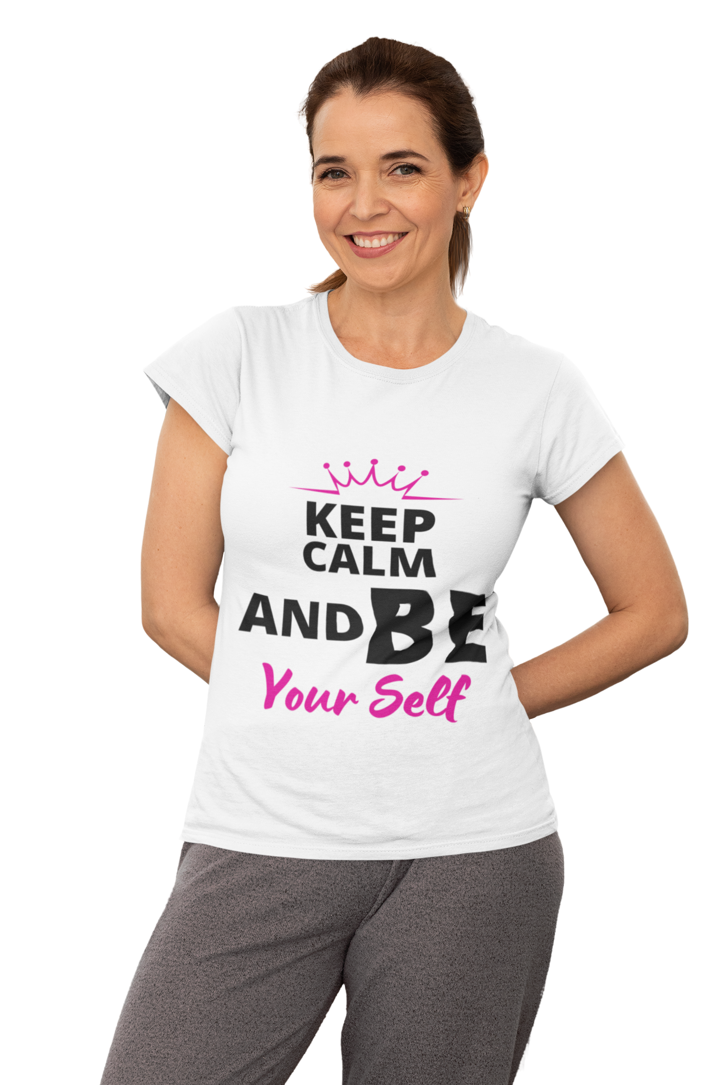 ShareKEEP CALM AND BE YOURSELF White Printed Soft T-Shirt