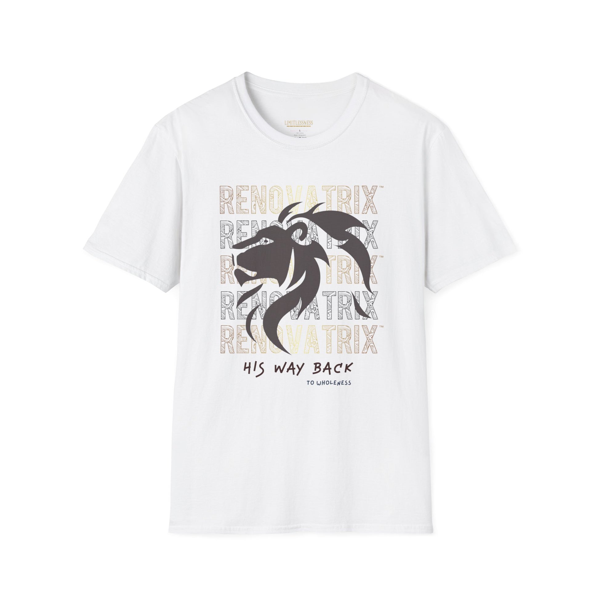 RENOVATRIX™ HIS WAY BACK TO WHOLENESS TSHIRT Dark Grey Lion Head on Front. Manly Tshirt